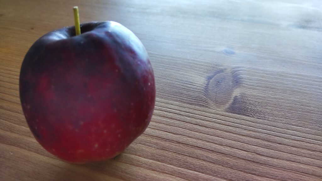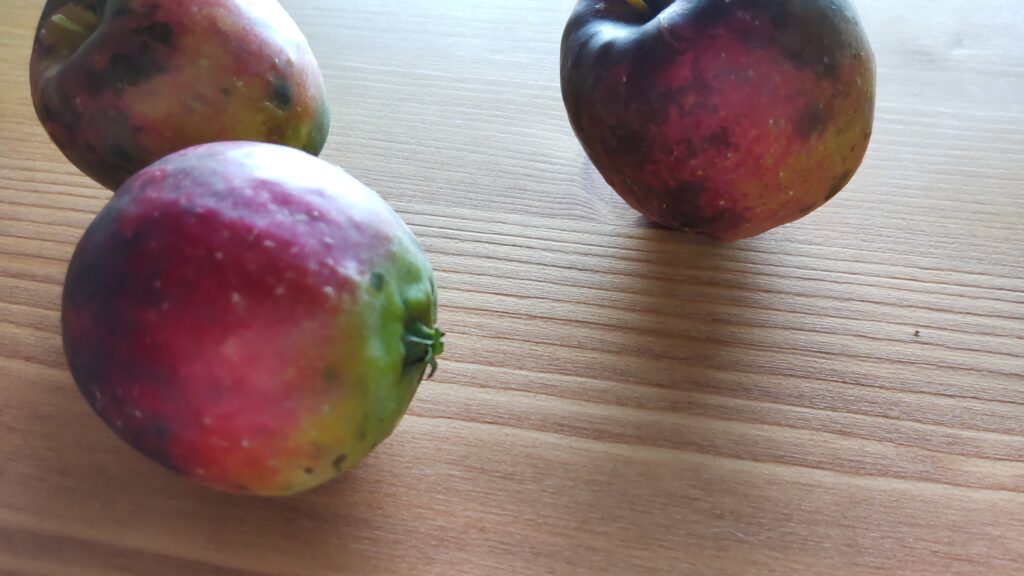 2024年の春に、2種の「アルプス乙女」と「王林」の苗木を植え付け、翌年2025年に実がついてくれました。