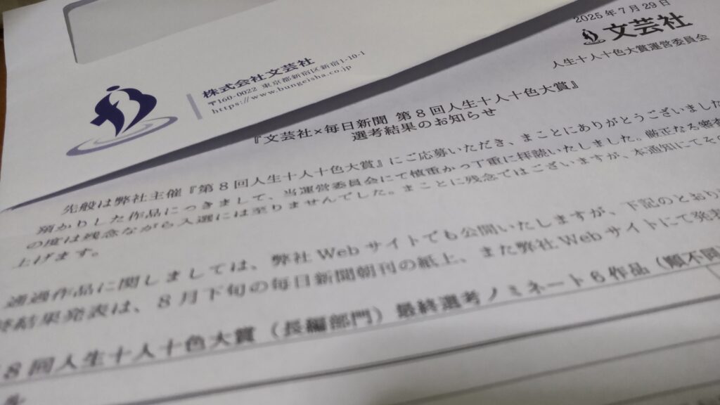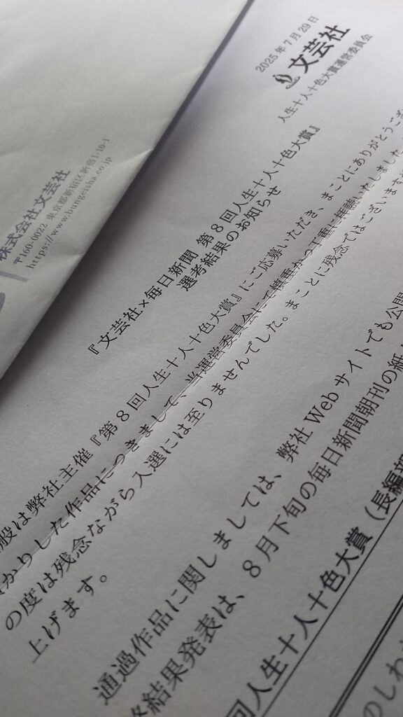 結果、落選してしまったものの挑戦できたことと貴重な通知をいただけたことがとてもうれしかったです。